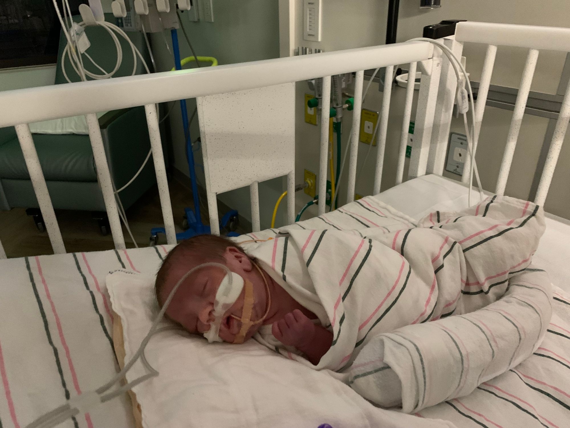 Jan 19: Leo gets a crib 32+3 ga or 6 weeks old